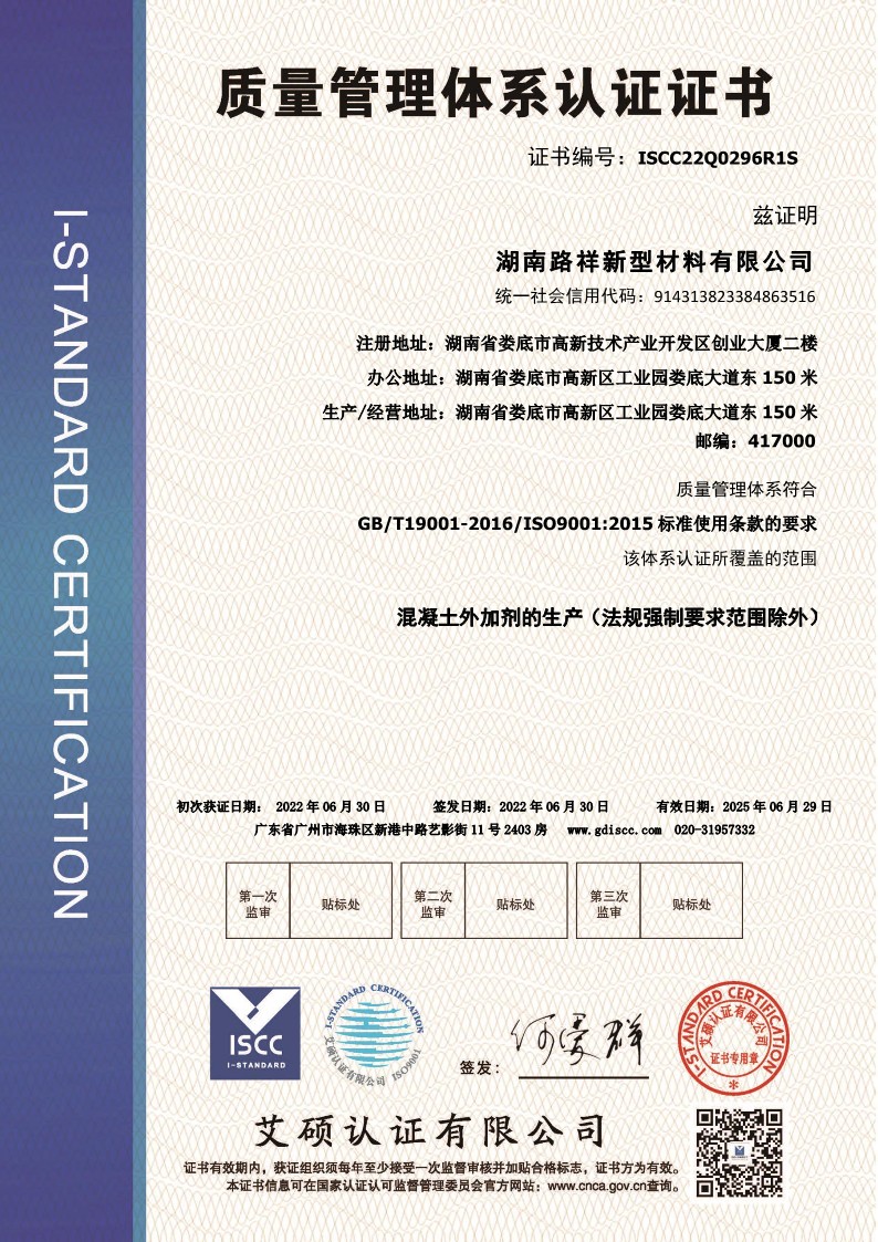 湖南路祥所有產品均通過國家建筑工程質量監督檢測標準,并且擁有國家認可的環境管理體系、質量管理體系、職業健康安全管理體系、中國鐵路產品認證(CRCC)等認證資格。